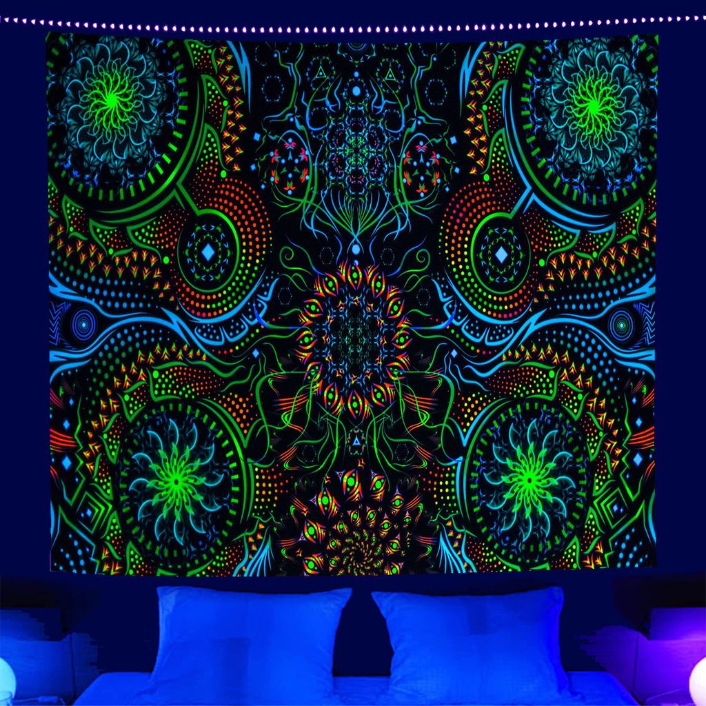 Nighttime Magic: Watch your walls come alive! This glow-in-the-dark tapestry absorbs daylight to cast an ethereal glow after sunset, creating a celestial sanctuary in your room.